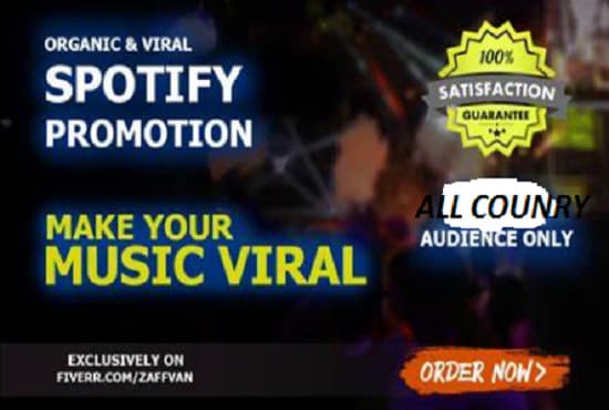 - Your Spotify music will be promoted on websites, Targeted Forums and Blogs and to drive Huge Potential and REAL social audiences (traffic) to your music (Majority of Audience are from USA, Canada and Europe)